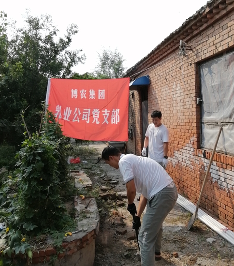 貧困戶魏澤美家是博農(nóng)乳業(yè)公司對(duì)口扶貧幫扶戶,公司黨支部了解到魏澤美家中廁所年久失修,給其生活造成不便的實(shí)際情況,經(jīng)過(guò)研究,決定發(fā)揮公司支部黨員水電、建筑等人才優(yōu)勢(shì),組織黨員直接參與其廁所整修工作。30日下午,乳業(yè)公司黨員12人克服天氣炎熱、工作環(huán)境條件復(fù)雜的多重困難,全身心投入到廁所整修工作中,有的撤除房頂,有的焊接梁架,有的開(kāi)挖水溝,有的連接電路,用整整一下午時(shí)間,完成了房頂撤除更換、連通水電的任務(wù),幫扶工作受到貧困戶魏澤美的交口稱贊。